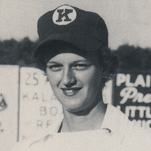 All-American Girls Professional Baseball League ®Back, L-R: Mitch Skupien (Manager), Ruth Williams, Jane "Jeep" Stoll, Dorothy "Dottie" Naum, Elaine Roth, Angie Armato, Barbara "Bobbie" Liebrich (Chaperone)
