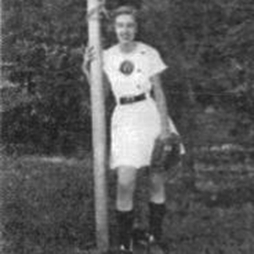 All-American Girls Professional Baseball League ®Back, L-R: Jacquelyn "Jackie" Kelley, Rose Gacioch, Eleanor "Squirt" Callow, Bill Allington (Manager), Marie "Boston" Mansfield, Irene Applegren, Carol Habben, Jean "Buckets" Buckley.