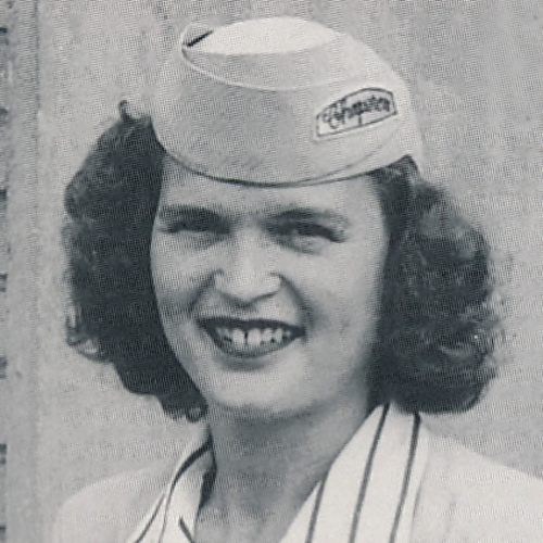 Front, L-R: Dorothy "Snookie" Harrell Doyle, Dorothy "Dottie" Key, Dolores "Pickles" Lee, Joan Berger, Dorothy Green (Chaperone), Alice Pollitt Deschaine, Ruth "Richie" Richard, Helen "Nordie" Nordquist, Migdalia "Mickey" Perez Jinright.